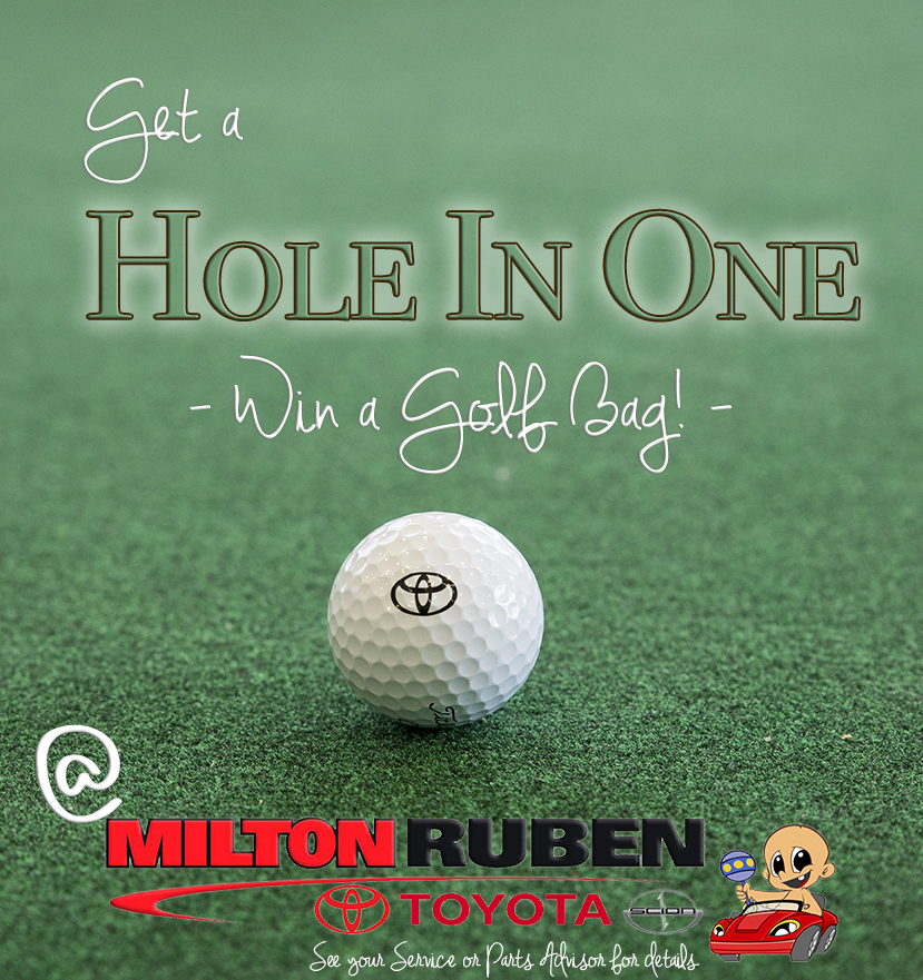 From now until the Saturday before Masters, we will have a putting green set up in the Toyota Guest Lounge, where you can try your hand at a Hole-In-One! All contestants who succeed on the first try will win a Key Fob Cover and an entry for an Ogio Itza X-tra Light Golf Bag with an Accessory Kit!